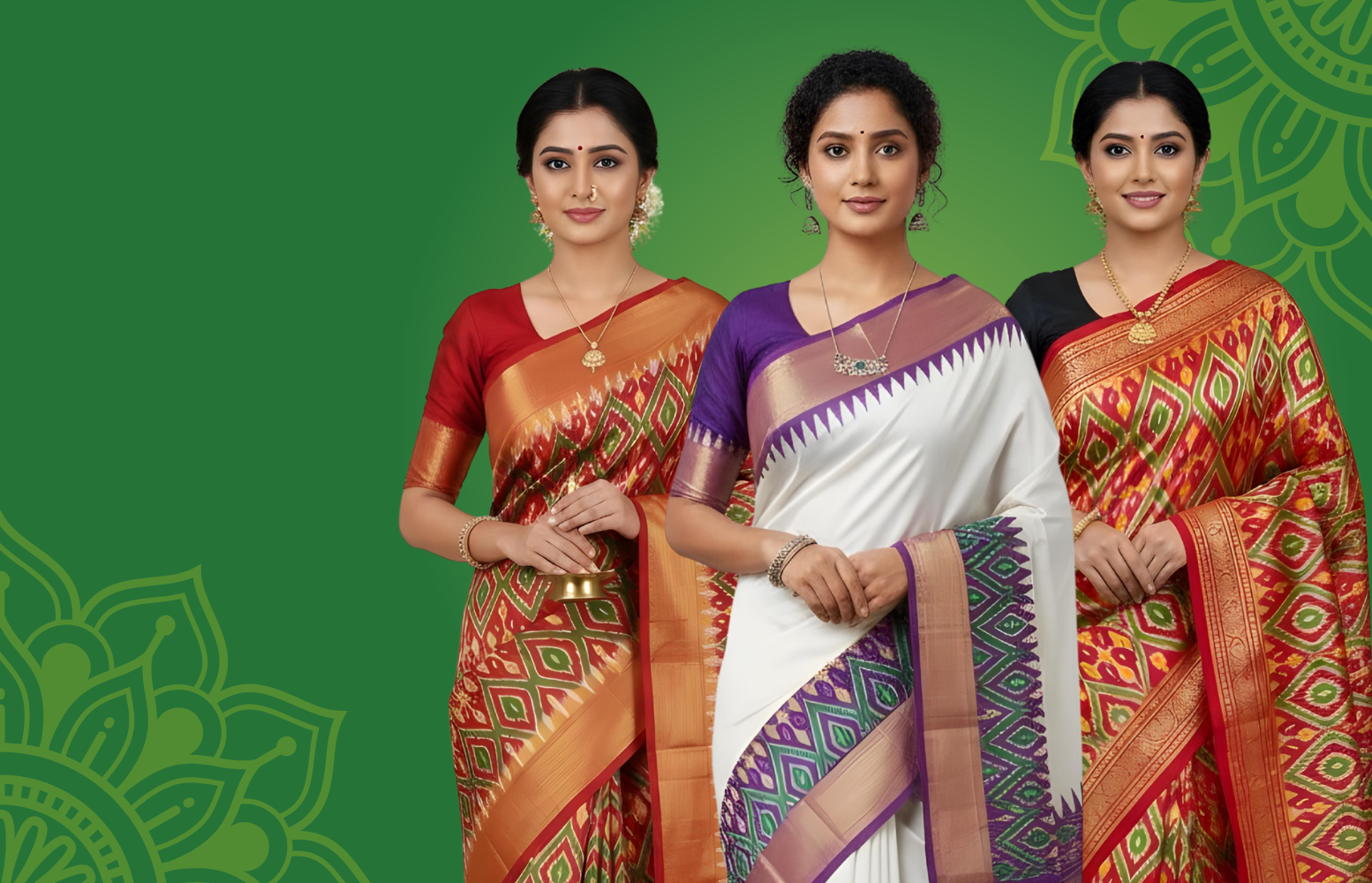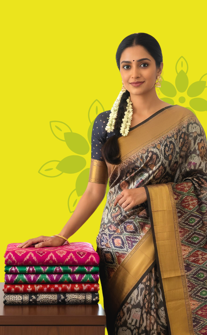 HandcreaftedExquisite Ikkat SilksElevate your wardrobe with heritage drapes. Masterfully woven threads designed for the modern connoisseur.
