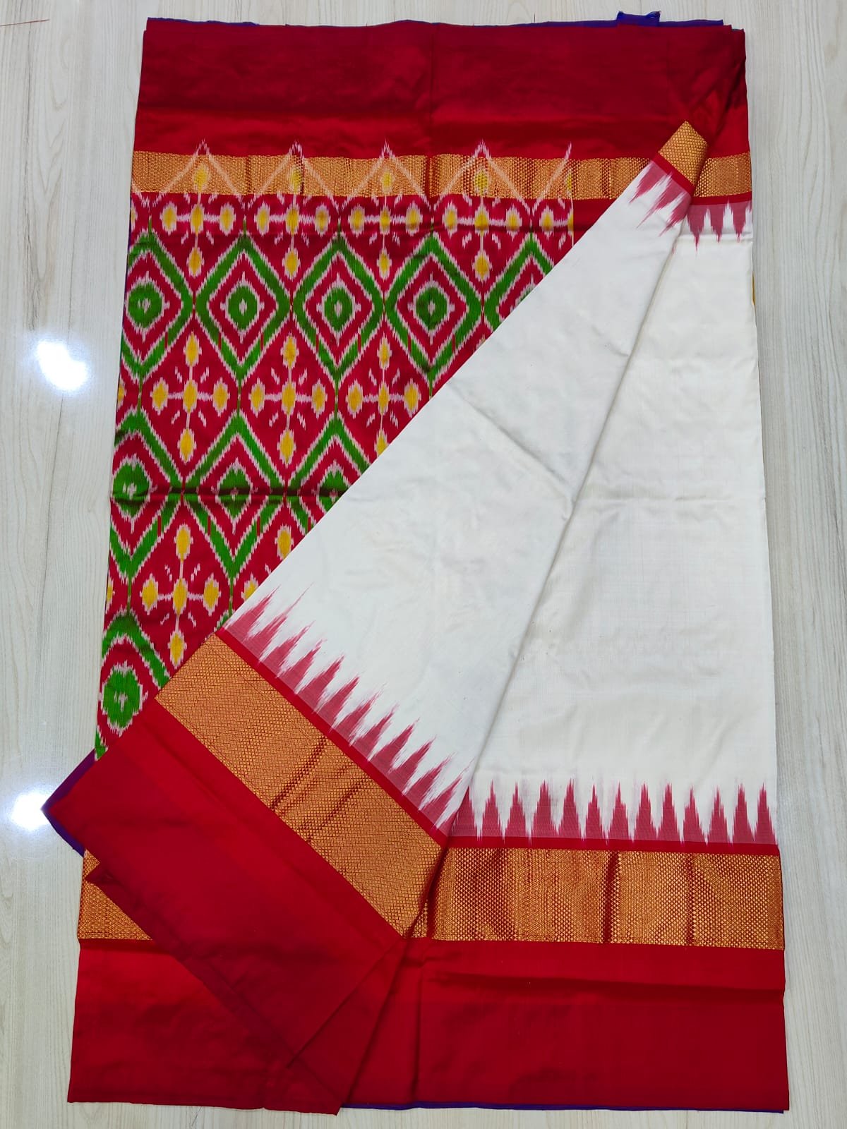 Ikkat Ivory-Red